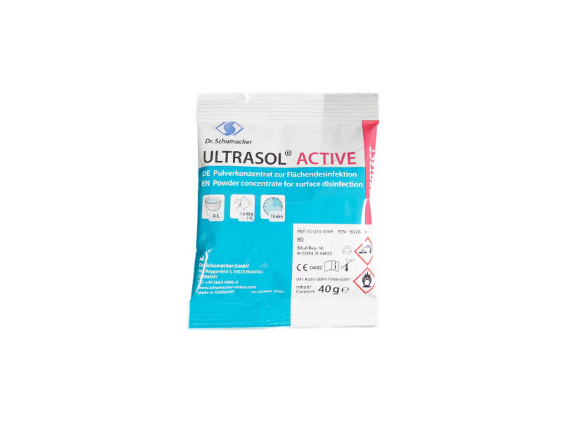 ULTRASOL ACTIVE ist ein äußerst effektives Pulverkonzentrat, das für die Desinfektion und Reinigung von Flächen unterschiedlichster Art entwickelt wurde. Es zeichnet sich durch ein breites Wirkungsspektrum aus und erfüllt selbst höchste Anforderungen an die Wirksamkeit. Die Anwendung von ULTRASOL ACTIVE ist zuverlässig und sicher.