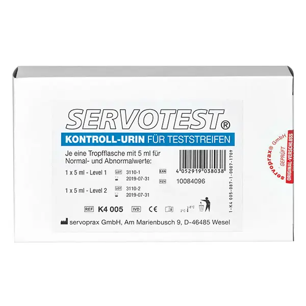 Servotest KontrollurinFür eine verlässliche Qualitätssicherung Ihrer Teststreifen Seit dem 1. Juli 2013 sieht die RiliBÄK 2008 vor, dass für die Ergebnisse Ihrer Teststreifen eine verbindliche Qualitätskontrolle durchgeführt werden muss, unabhängig davon, ob die Auswertung visuell oder mithilfe eines Readers erfolgt. Unser SERVOTEST Kontrollurin bietet Ihnen eine präzise Möglichkeit, diesen Anforderungen gerecht zu werden:Herkunft: Hergestellt aus einem humanen Urin-Standard.Doppelte Kontrolle: Unsere Kontrollsets bestehen aus Proben für Normal- und Abnormalwerte, sodass Sie stets die Genauigkeit Ihres Tests überprüfen können.Langlebigkeit: Nach dem ersten Öffnen des Röhrchens bleibt der Kontrollurin bis zu 3 Monaten haltbar, sofern er im Kühlschrank gelagert wird.Universalität: Der Kontrollurin ist für alle gängigen Urinteststreifen geeignet, inklusive der Tests für HCG und Albumin.Zielwerte: Für eine Vielzahl von Teststreifen-Marken, darunter Servoprax, Siemens, Roche, Analyticon, Macherey & Nagel, Gabmed, Hitado und Widumed, sind Zielwerte vorhanden. Setzen Sie auf Qualität und Sicherheit – mit dem SERVOTEST Kontrollurin erhalten Sie eine zuverlässige Überprüfungsmöglichkeit für Ihre Teststreifen. Weitere Informationen des Herstellers Kaufen Sie jetzt Servotest Diagnostikstreifen für Urin online bei uns und profitieren Sie von unserem schnellen Versand und unserem hervorragenden Kundenservice.